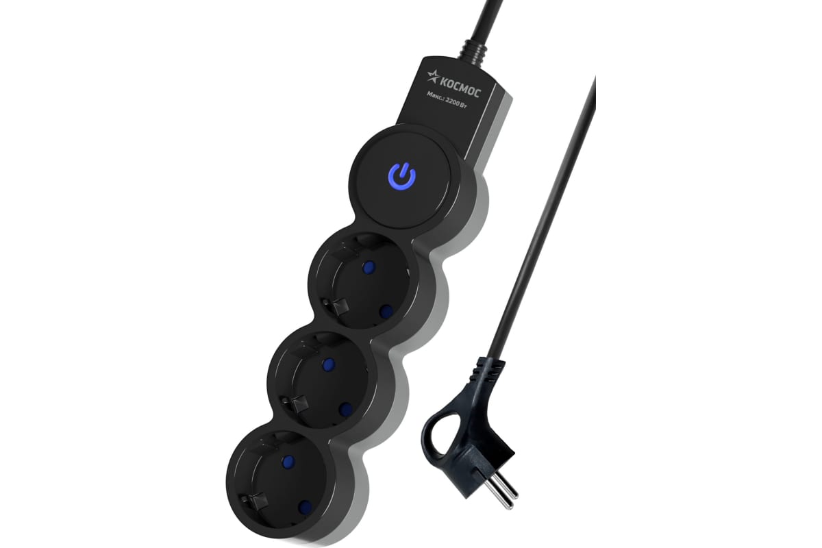 Удлинитель Космос, 3-розетки, 5 м, черный (YKsm5m-3g-Z-V10A-B)