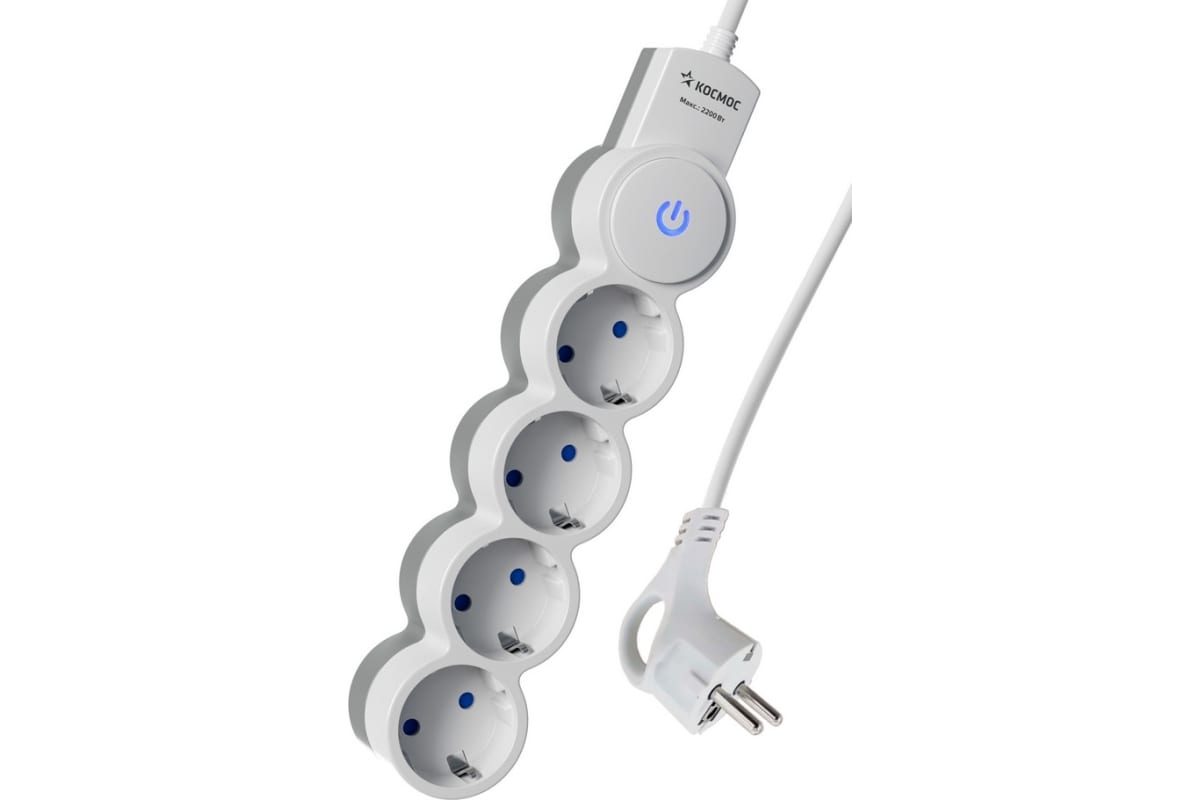 Удлинитель Космос, 4-розетки, 3 м, белый (YKsm3m-4g-Z-V10A-W)