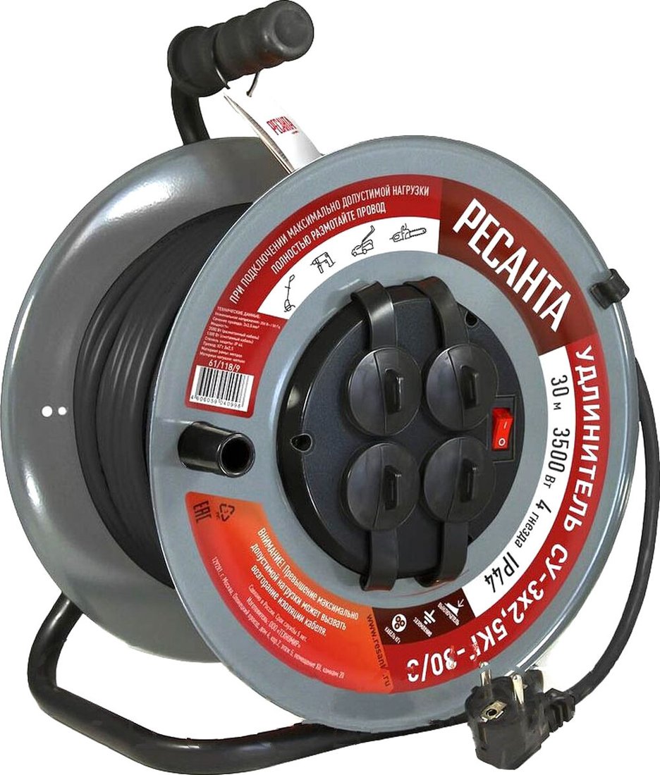 Удлинитель на катушке Ресанта СУ-3х2.5КГ-30/3