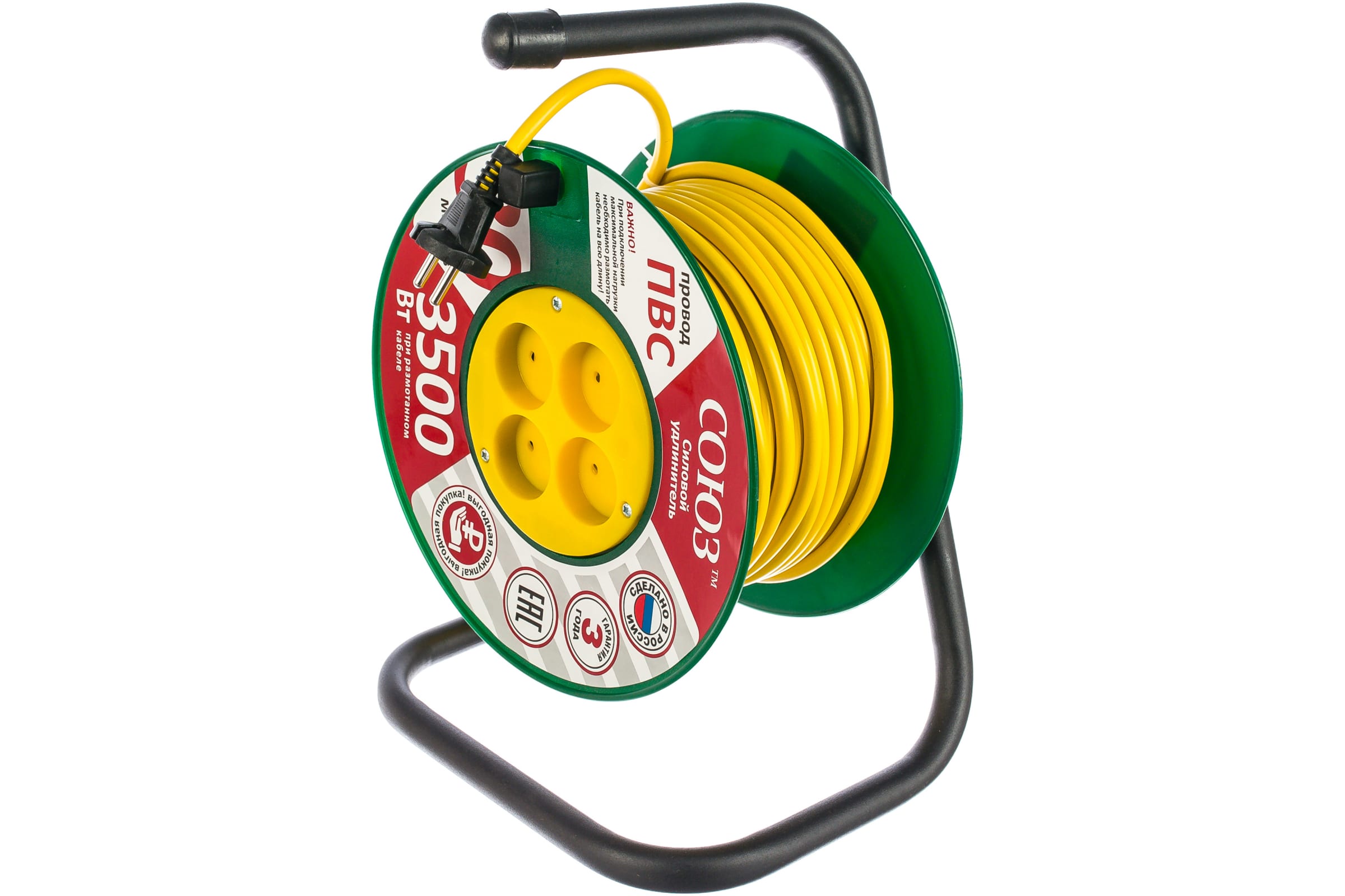 Удлинитель на катушке Союз, 4-розетки, 30м, зеленый/желтый ( 481S-3303)
