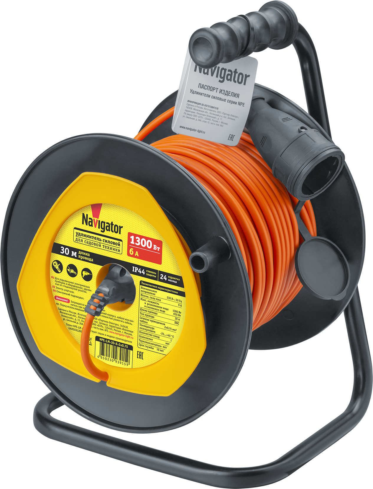 Удлинитель на катушке Navigator NPE-LM-30-X-2x0.75, 1-розетка, 20 м, черный/оранжевый (93915), NPE-LM-30-X-2x0.75