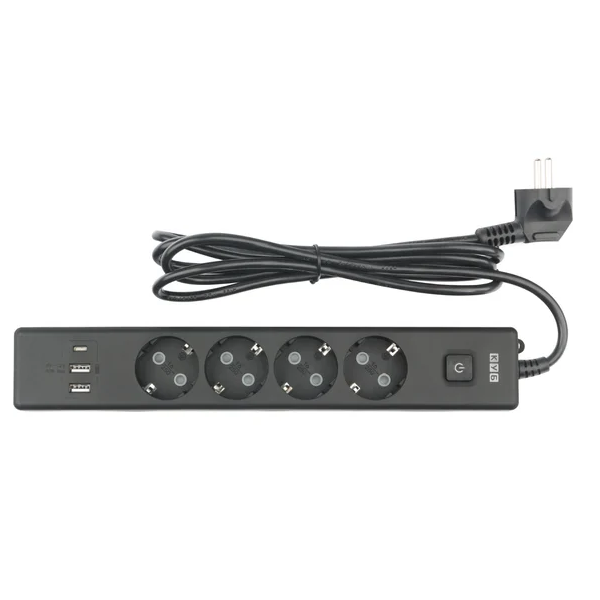 Удлинитель сетевой Power Cube PC-7B-2M 4р с/з вык., 3USB, 3500 Вт, 16А, 1.9 м, 3*1,0 (черный), PC-7B-2M