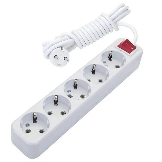 Удлинитель DE-PA Inci 5 гнезд с заземлением и кнопкой 5м. Сетевой фильтр на 5XSchuko розетки Тип F (евророзетка) с заземлением, с выключателем. Кол-во Жил - H05VV-F 3G., Сечение 1 мм Материал проводника: медь, Мощность выходная макс.- 250В. Максимальный ток нагрузки 16А. Номинальный ток нагрузки 6А. Суммарная мощность нагрузки: 3,5 кВт. Длина кабеля с устройством 5м, белый.