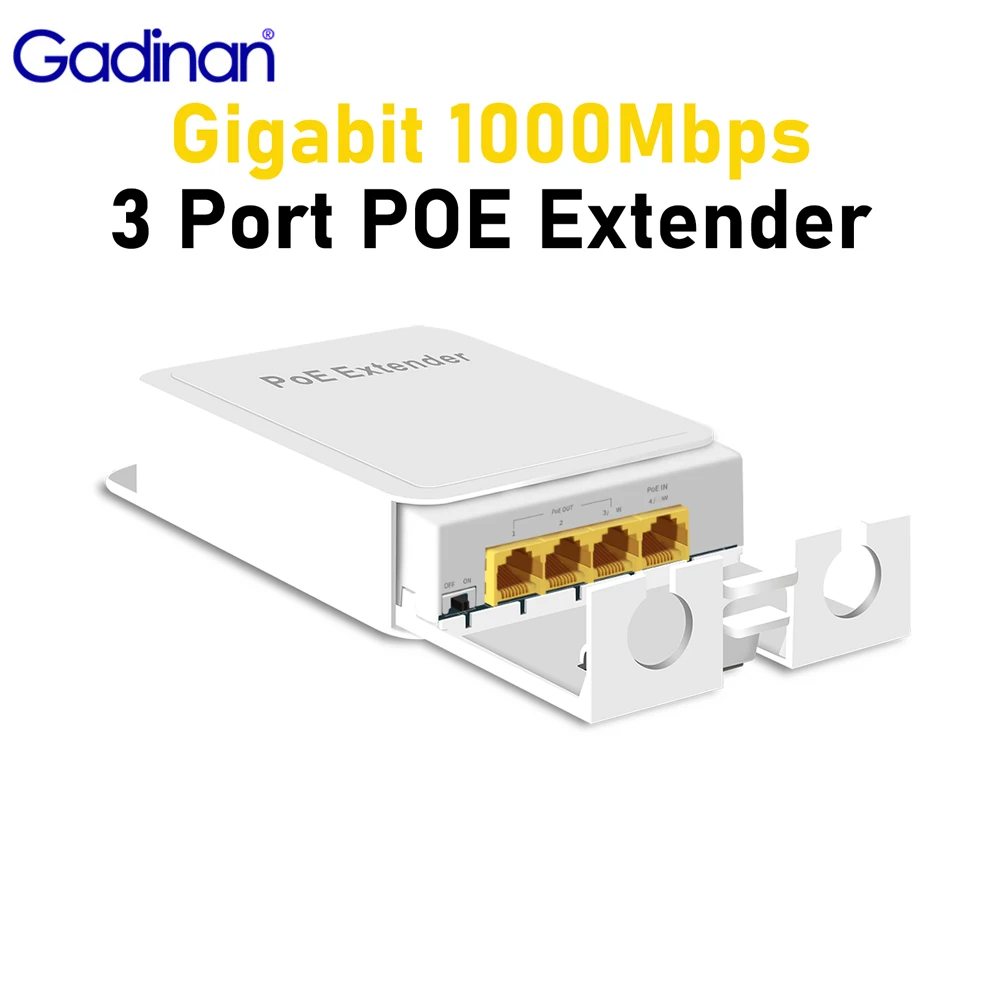 Удлинитель Gadinan Ethernet PoE гигабитный, 1 в 3 выхода, Ретранслятор с 3 портами для улицы, водонепроницаемый, с питанием 1000 Мбит/с и передачей данных