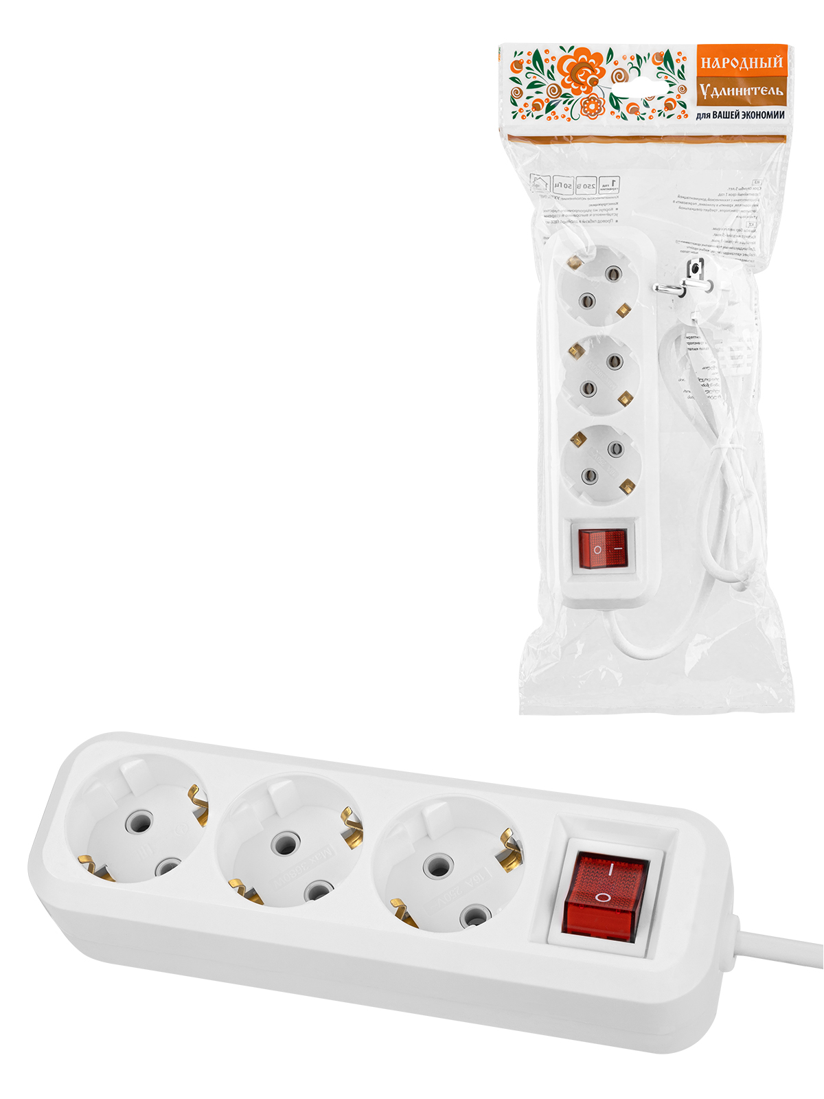 Удлинитель TDM Народный У1-33058, 3-розетки, 3 м, белый (SQ1303-1421), У1-33058