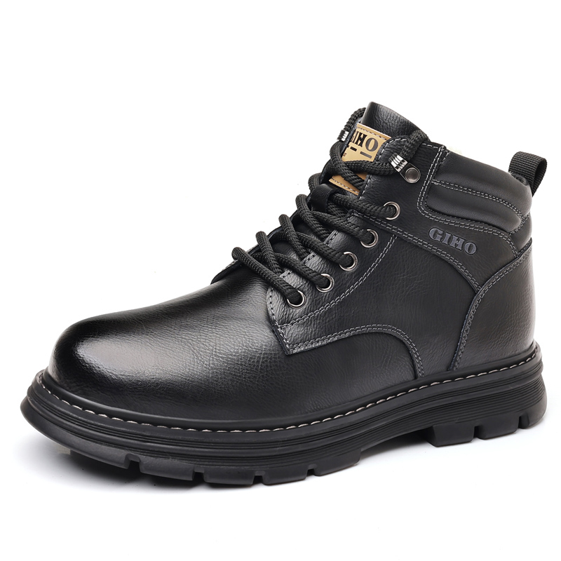 GIHO Мужские ботинки Martin с короткой овчиной утепленные на шерстяной подкладке черные, цвет Black Wool