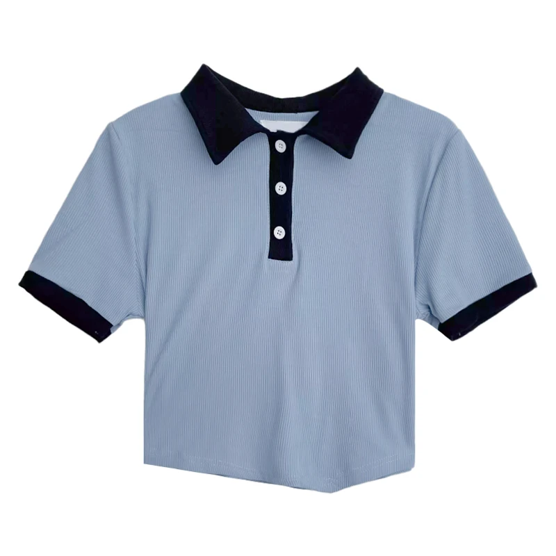 Удобная хлопковая эластичная облегающая Асимметричная укороченная футболка с лацканами