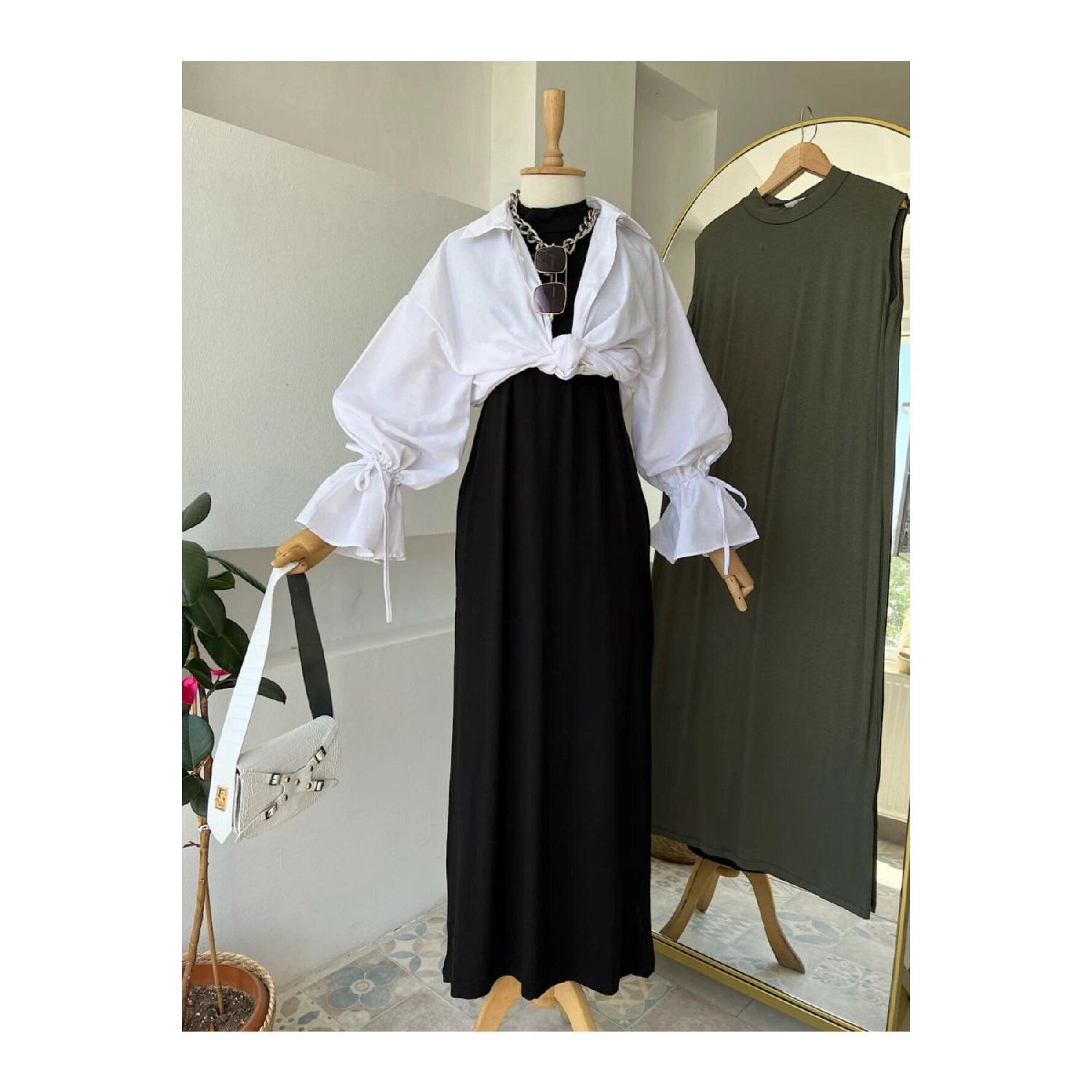 Удобное платье из гибкой чесаной ткани без рукавов с половиной воротника S чёрный