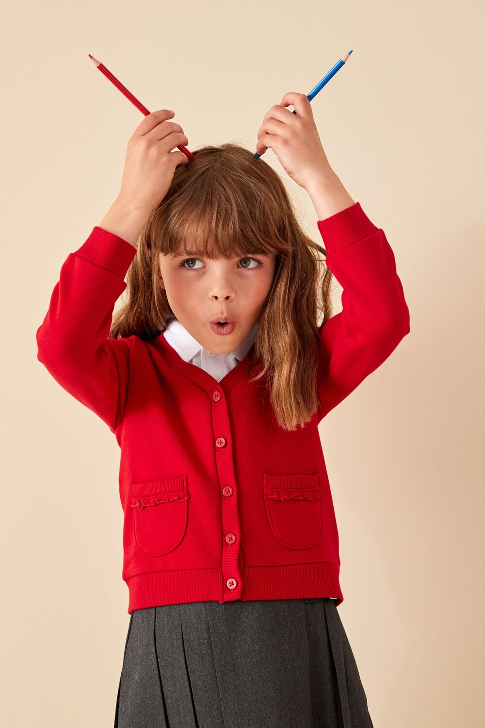 Школьный кардиган из трикотажа с высоким содержанием хлопка и рюшей на кармане Next, красный