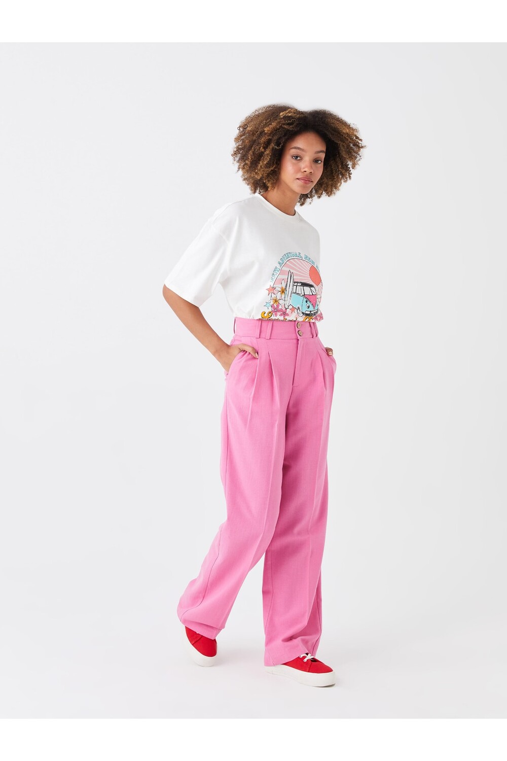 Удобные прямые женские брюки широкого кроя LC Waikiki, розовый
