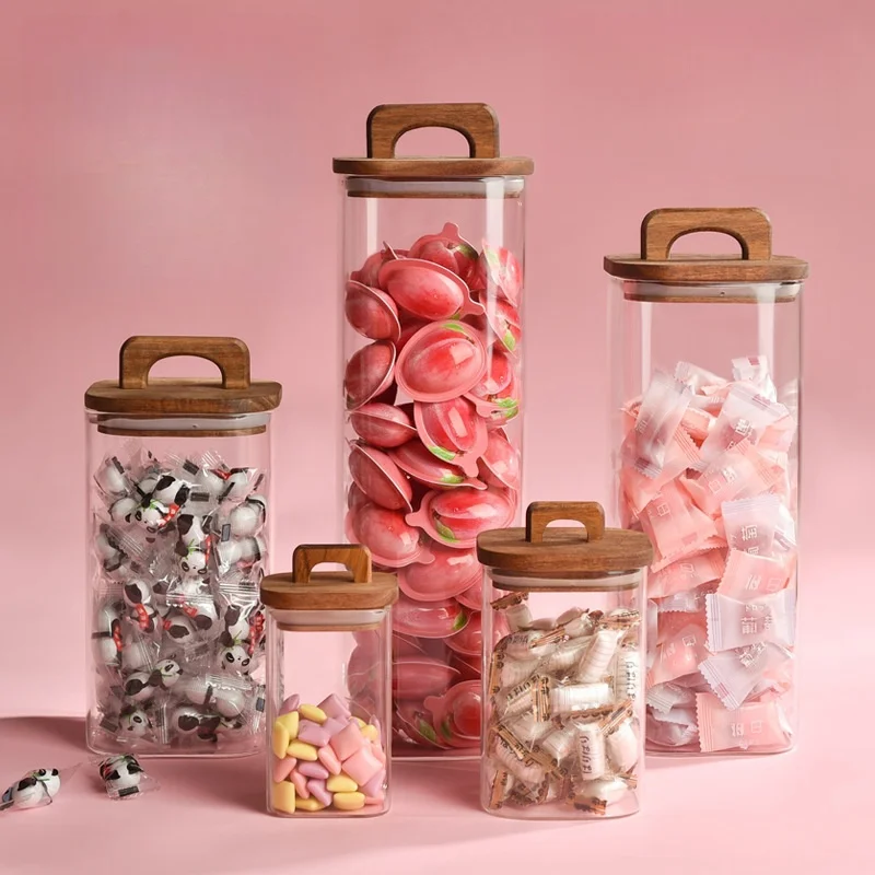 Удобный в захвате квадратный стеклянный резервуар для хранения специй, сахара, конфет, зерен, чая, подходит для хранения и домашних органайзеров