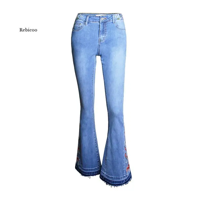 Узкие джинсы с цветочной вышивкой, Женские винтажные расклешенные джинсовые брюки, женские джинсы