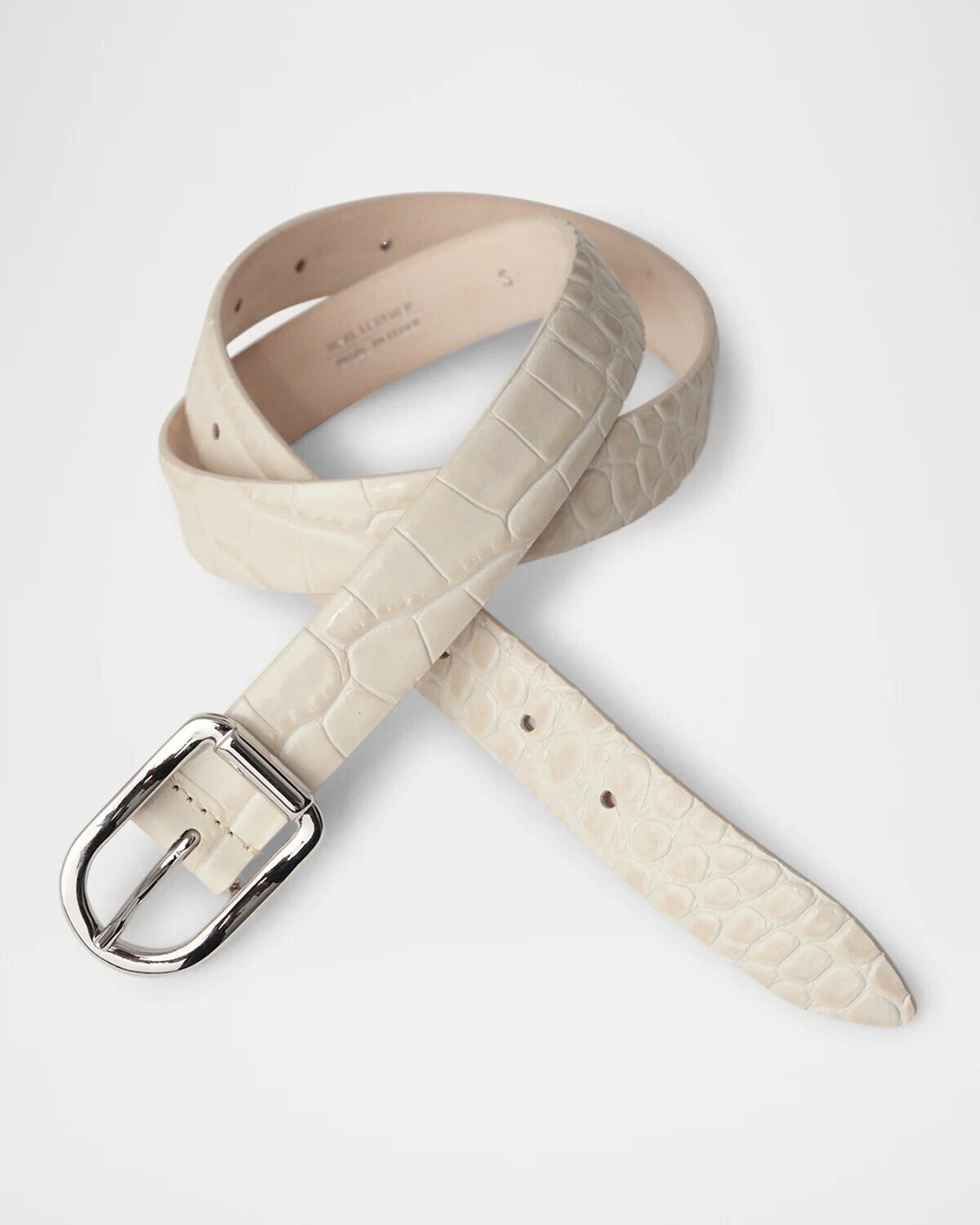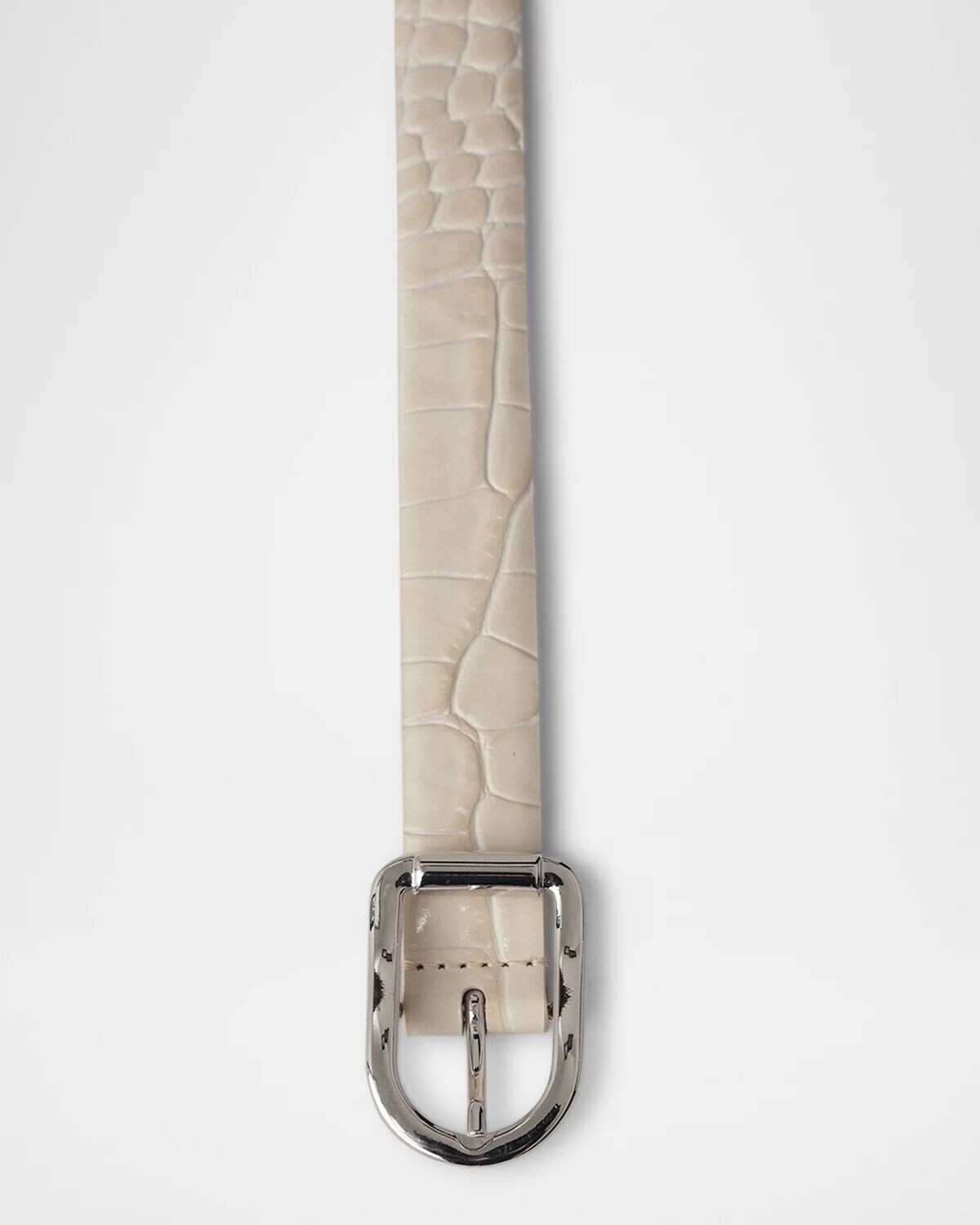 Узкий кожаный ремень Mija с тиснением под крокодила Dehanche, цвет Ivory Croco Silver