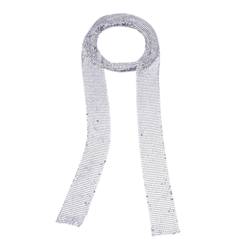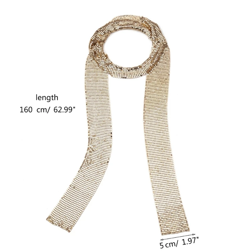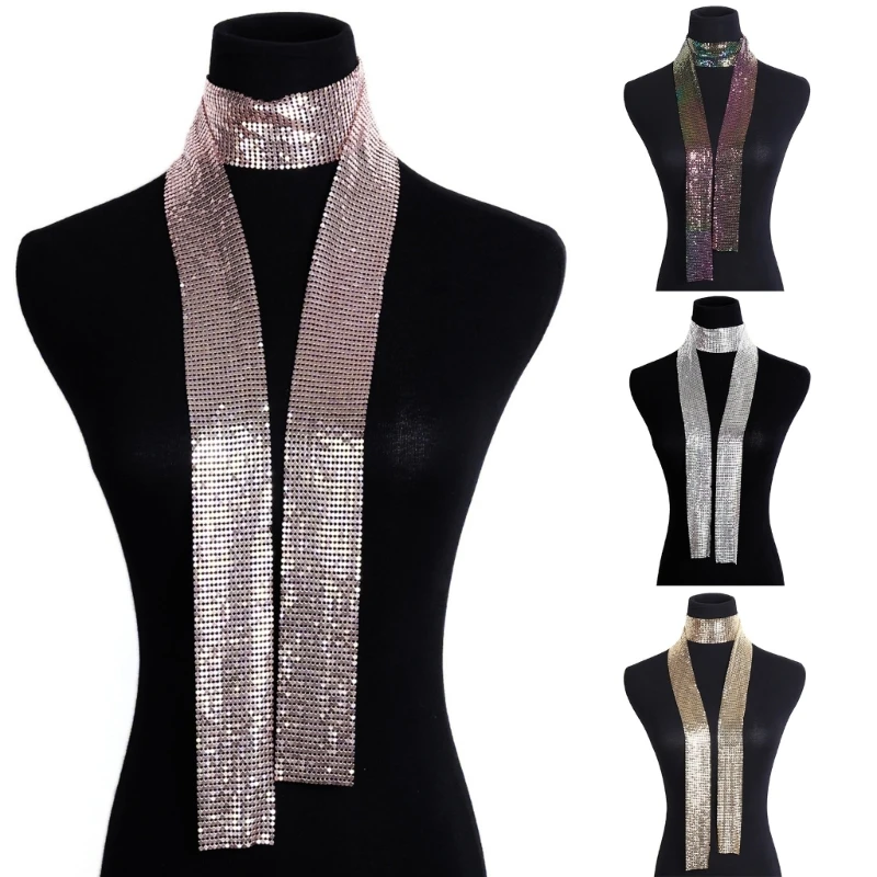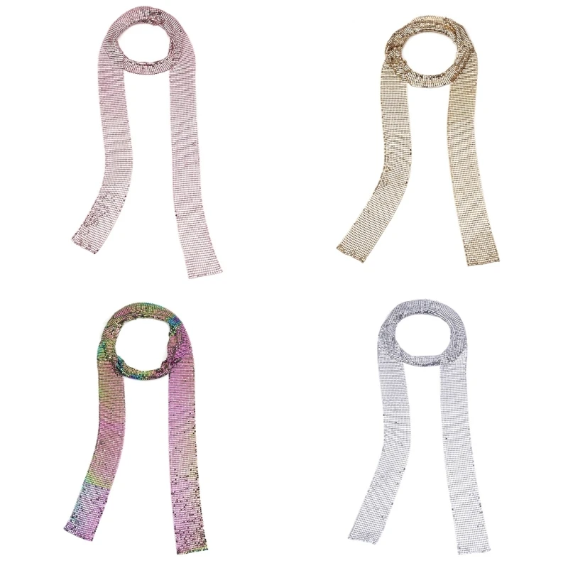 Узкий шарф с блестками M2EA, шарф с блестками, чокер с блестками, ожерелье с блестками, воротник, ожерелье с металлическими блестками, цепочка до ключиц