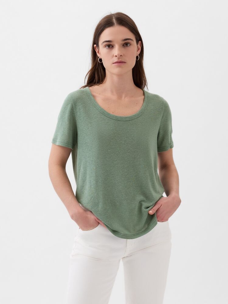 Бренд: GapЦвет: зеленыйЖенская льняная рубашка.Глубокий вырез.Короткие рукава, прямой крой.Материал: лен и полиэстер.