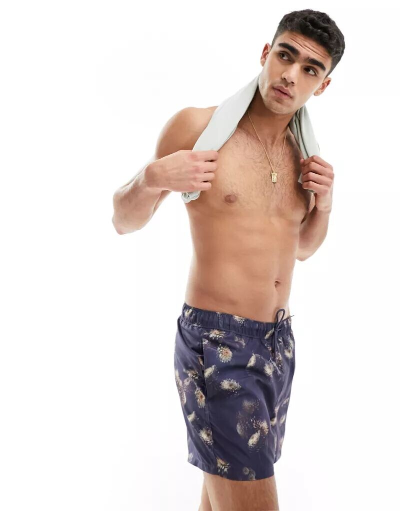 Укороченные плавки-шорты с цветочным принтом ASOS, Коричневый, Укороченные плавки-шорты с цветочным принтом ASOS