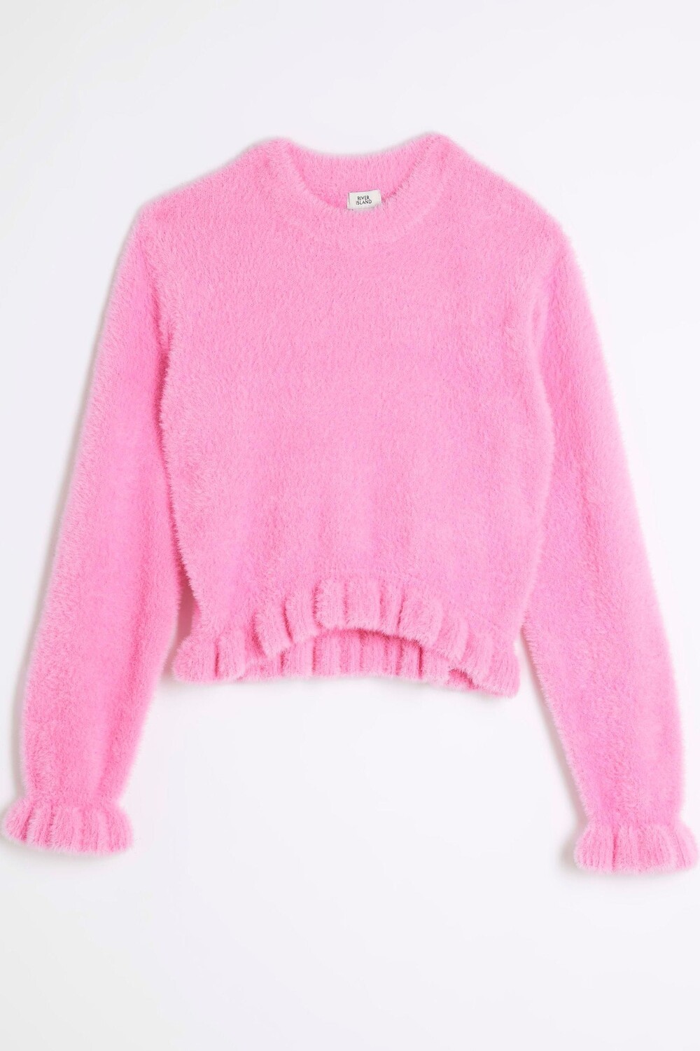Укороченный джемпер с оборкой для девочек River Island, розовый