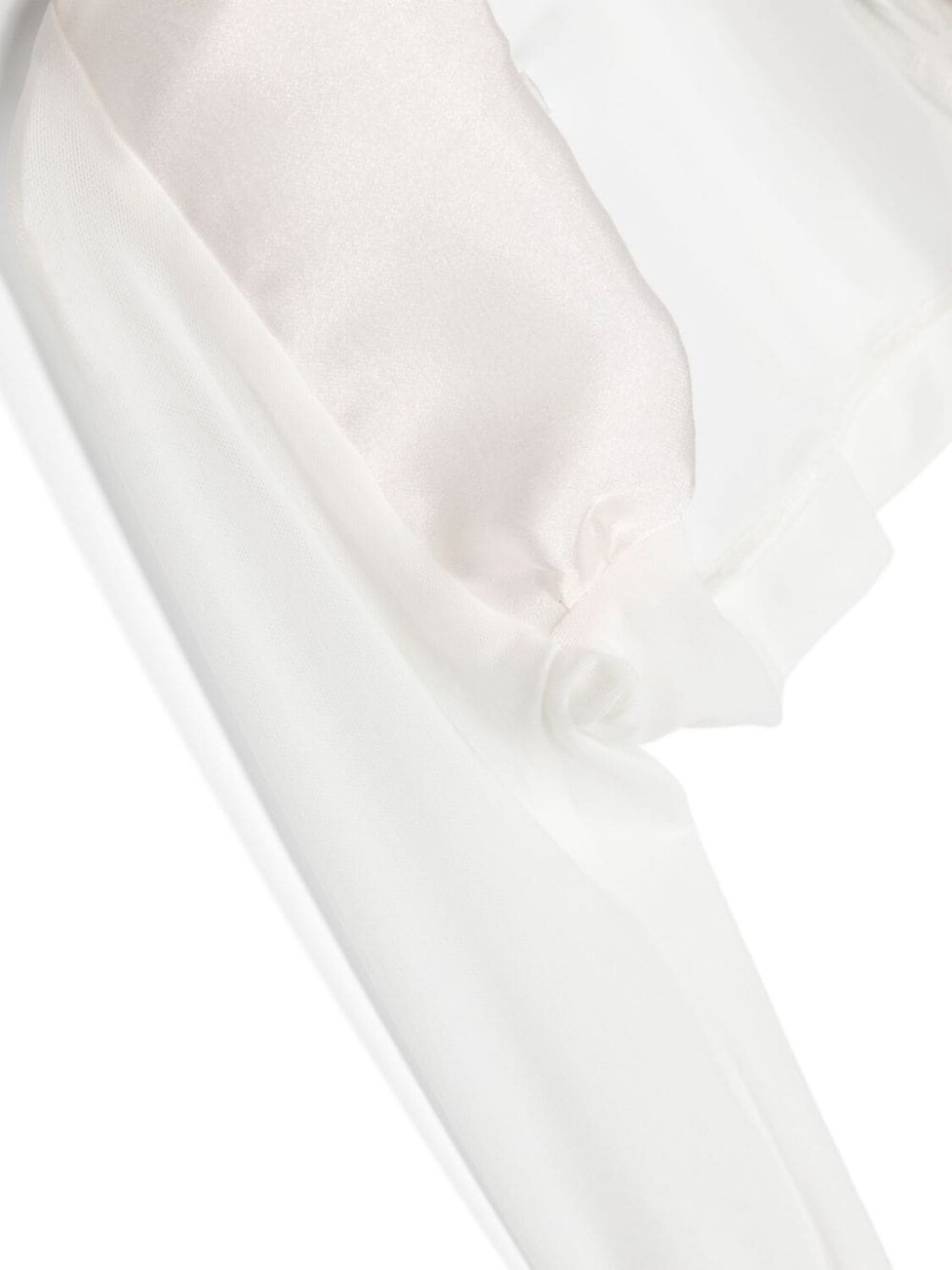 Подробнее о товаре: • молочно-белый/светло-розовый • эластичный материал • шалевый воротник • длинные рукава • подол и манжеты в рубчик • укороченная длина • прямой подол