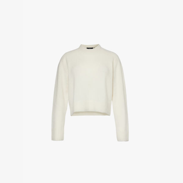Укороченный кашемировый джемпер с круглым вырезом Theory, белый