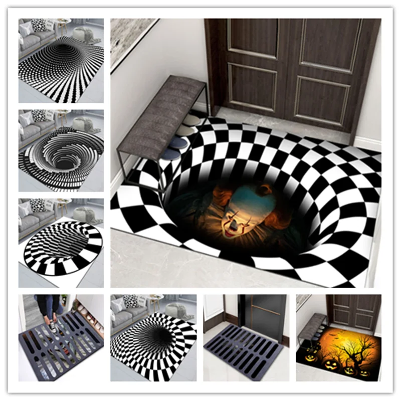 Украшение на Хэллоуин, 3D ловушка для клоуна, влагопоглощающий дверной коврик, крышка для прихожей в доме на Хэллоуин, Забавный коврик с заба...