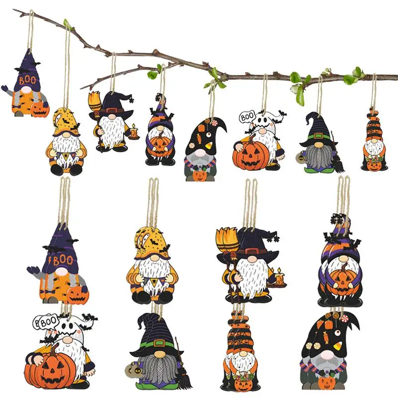 Украшения в виде Гнома На Хэллоуин, деревянное украшение на Хэллоуин, многоразовое деревянное подвесное украшение в виде гнома для спальни