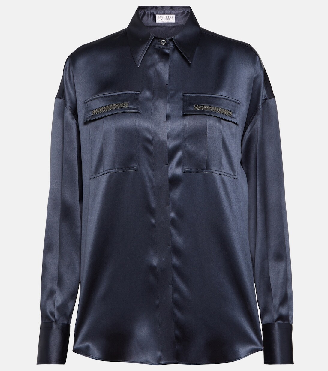 Украшенная атласная рубашка BRUNELLO CUCINELLI, синий