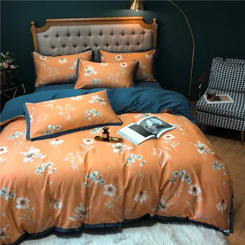 Yellow fEgyptian cotton bedding flower pastoral duvet cover bed linen flat sheets queen king size hometexitle for bedding room