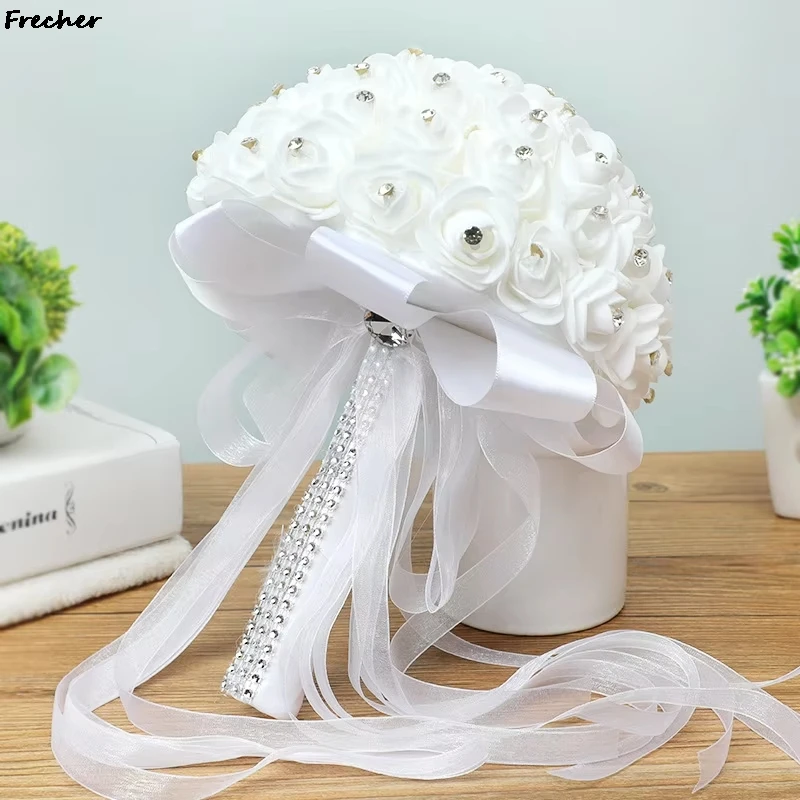 Романтические свадебные букеты, женские красивые белые цветы, свадебные искусственные розы, декор для вечеринки, кружевной цветочный свадебный подарок на день рождения