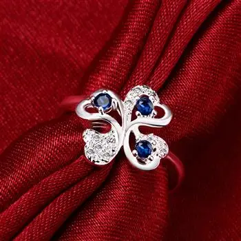 Newest Fashion Lucky Four Leaf Clover Ring Blue SPR062 Jewellery Rings for Women Wedding Ring Wholesale Bulk Jewelry Gift 2021