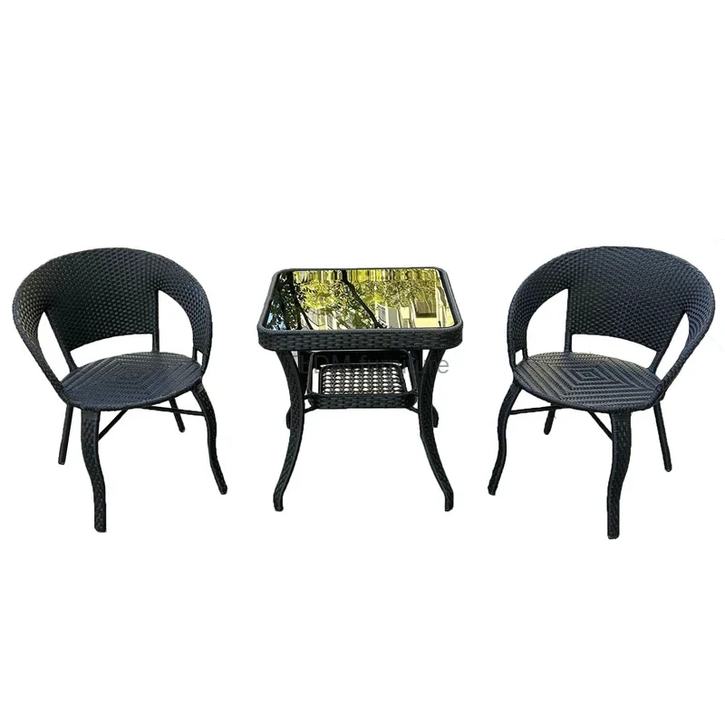 Уличная мебель из ротанга для балкона, удобный кофейный столик, комбинированный садовый стол для патио и стул, комплект из трех предметов, стулья из ротанга