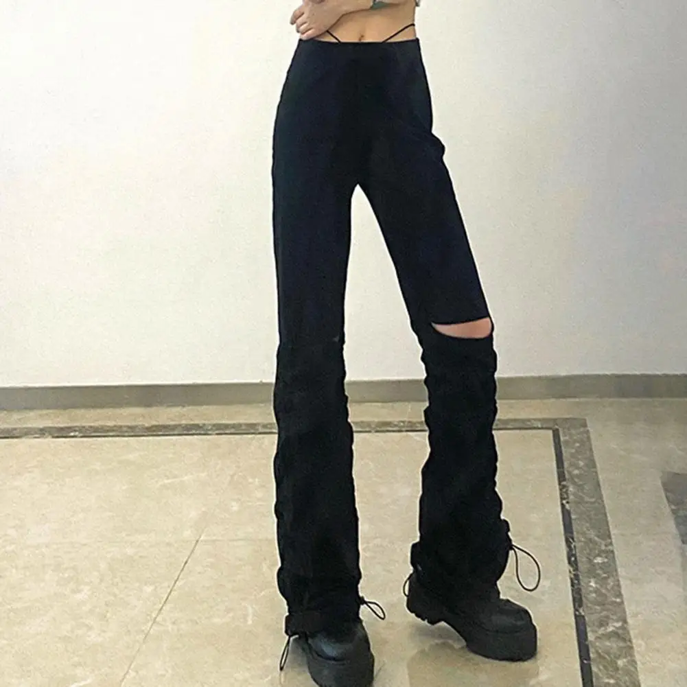 Уличная одежда, стильные длинные свободные брюки со шнуровкой, женский аксессуар, свободные брюки, повседневная одежда