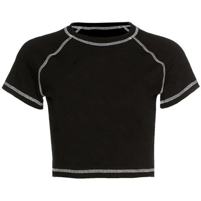 Sexy Crop Tops T Shirt Women Cotton Short Sleeve Elastic T-Shirts For Womens Summer Slim O-Neck Tee Shirt Femme Camisetas Mujer