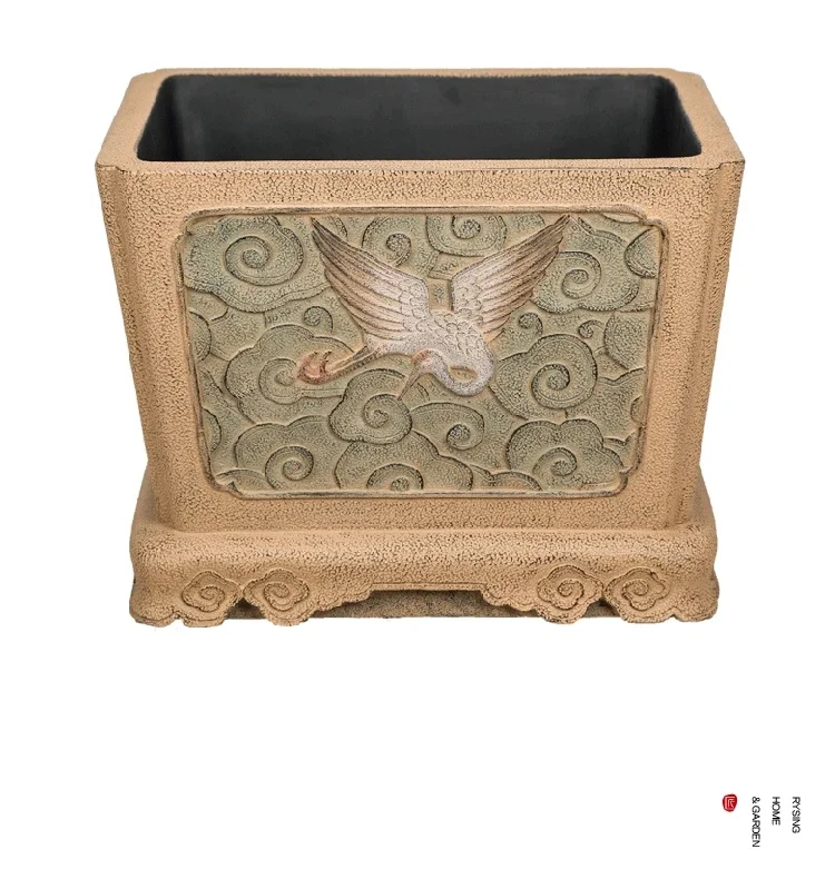 Уличная прямоугольная Цветочная коробка в китайском стиле, садовый большой цветочный горшок, креативное украшение для сада