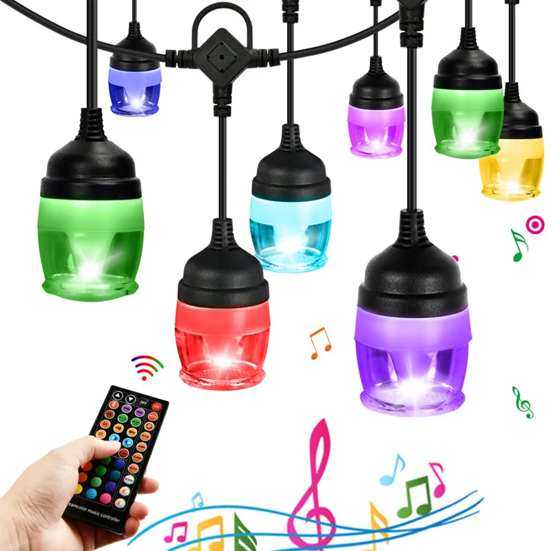 Уличная светодиодная RGB-гирлянда с подвеской, музыкальная лампа с дистанционным управлением через приложение, Рождественский светильник с затемнением вечерние ринки и сада