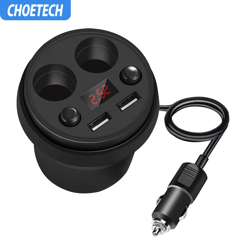 CHOETECH 5V 3.1A Car Charger Car-DC12-24V Cigarette Lighter Splitter Cup Power Socket Adapter With Voltage LED Display For GPS