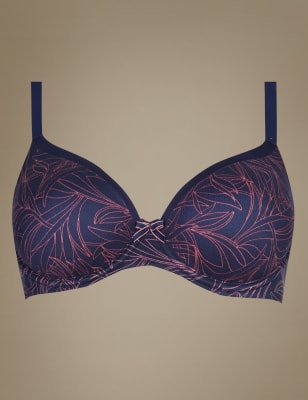 Ультрамягкий классический бюстгальтер на косточках с полноразмерной формованной чашкой A-E и растительной графикой