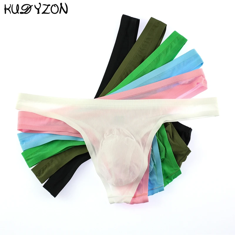 Ультратонкие гладкие мужские Бесшовные стринги с мешочком для пениса, сексуальные прозрачные мужские однотонные G-стринги