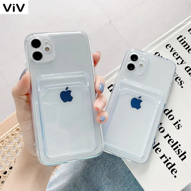 Ультратонкий Прозрачный чехол для iPhone 14, 13 Pro, 12 Mini, 11 Pro, SE, 2022, 7, 8 Plus, мягкий чехол из ТПУ с держателем для одной карты для iPhone X, XR, XS Max