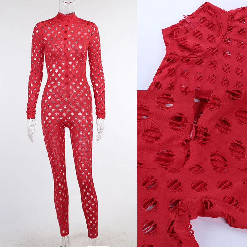Giyu Knitted Jumpsuit Women Combinaison Sexy Hollow Out Overalls Autumn One Piece Outfit Fitness Playsuit Bodycon Streetwear
