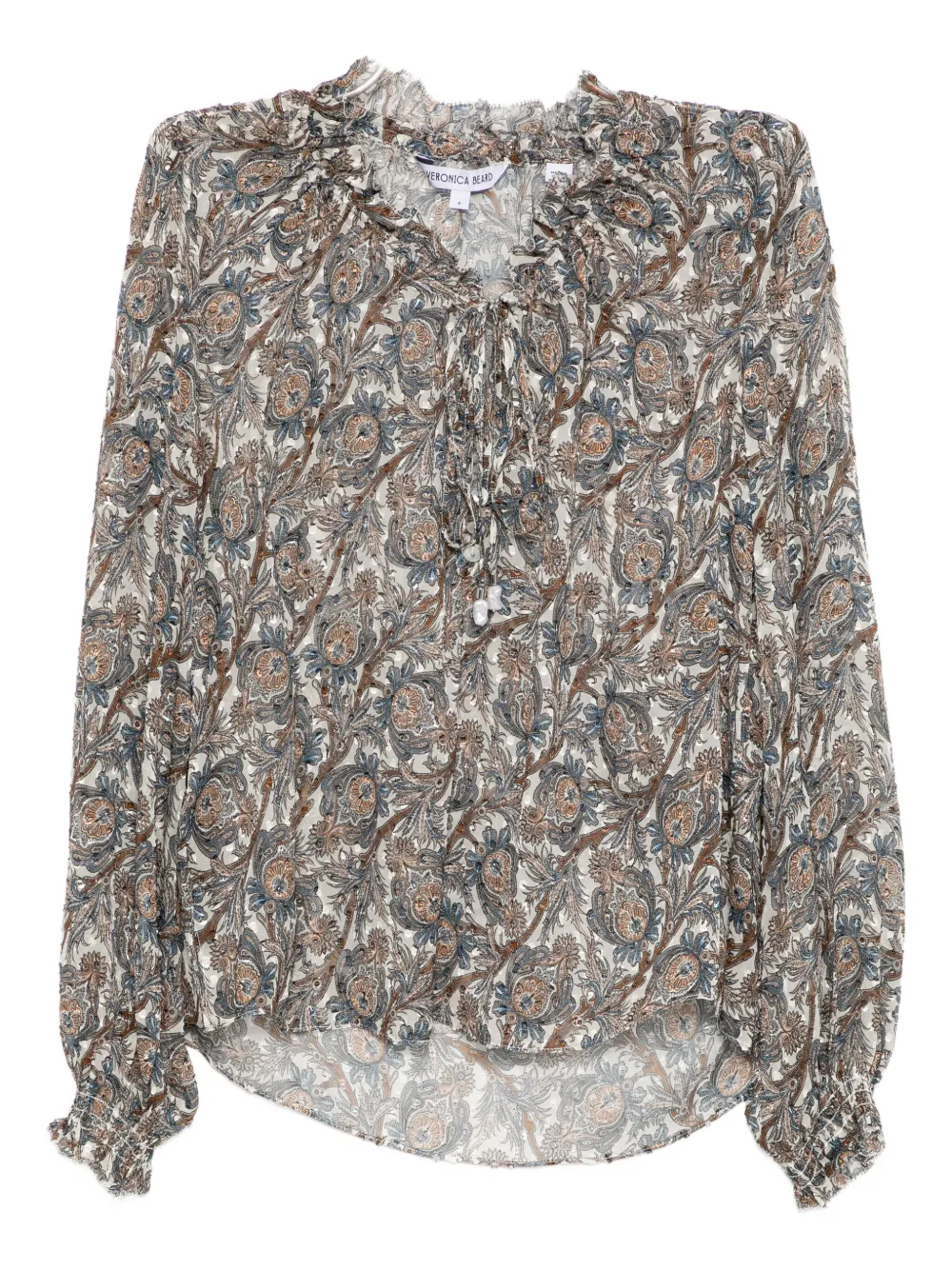 Женская рубашка 2021 на раннюю весну, новая рубашка со складками и цветочным принтом кешью, с воротником-стойкой, маленькими летающими рукава...
