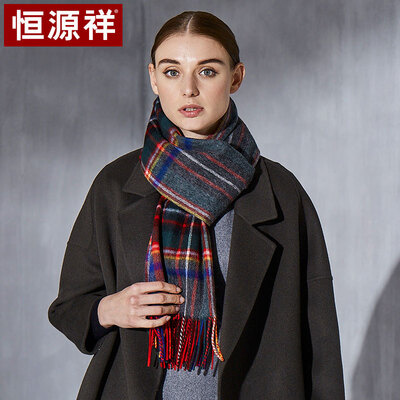 Hengyuanxiang wool&cashmere blended plaid scarf female autumn&winter scarf shawl dual-use Beijing with gift box 50M18209 dark gray