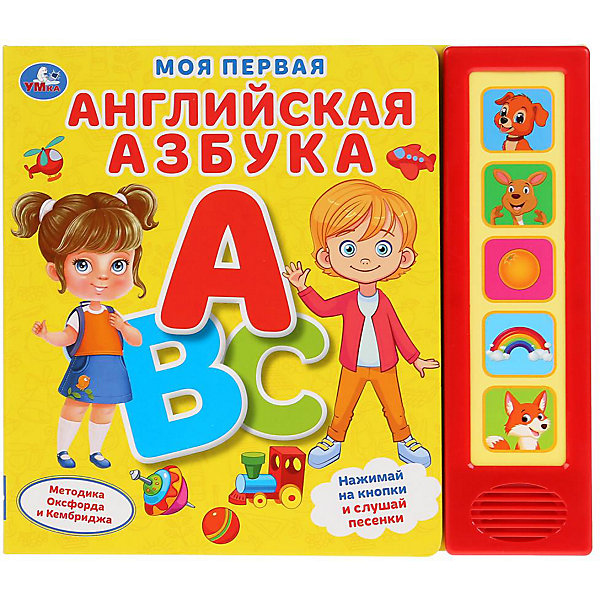 Красочная музыкальная книга познакомит малыша с английским алфавитом, созданным по методике Оксфорда и Кембриджа. Малыш будет с удовольствием рассматривать яркие картинки, изучать буквы, слушать песенки и подпевать. Ребёнок легко освоит включение звука: по нажатию на кнопку звук включится, при втором нажатии выключится. Композиции исполняются профессиональными артистами. Книжка сделана из плотного картона, поэтому родители могут не опасаться за её сохранность. Благодаря компактному формату её удобно брать с собой.