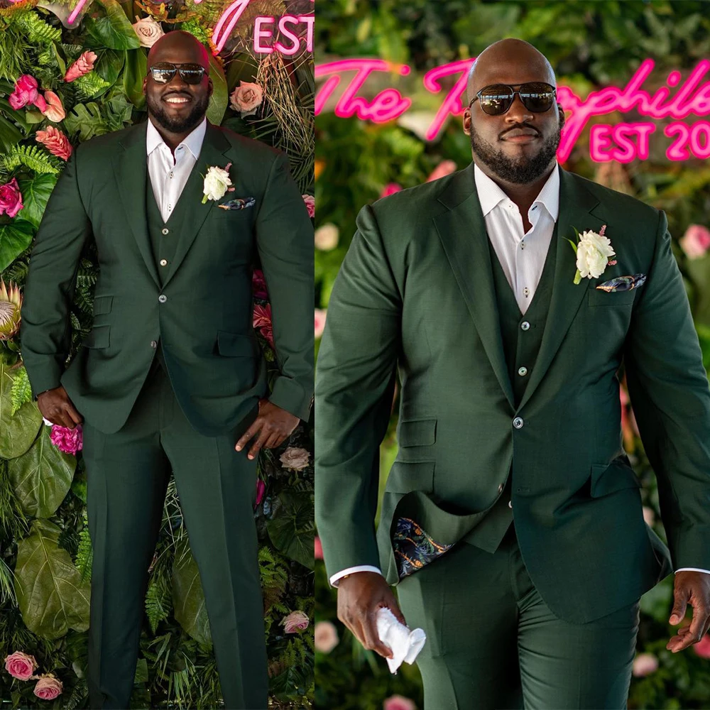 Умные мужские смокинги, зеленое свадебное платье с отложным воротником и отложным воротником, однобортные костюмы из блейзера на заказ, комплект из 3 предметов, одежда для жениха Вечерние вечеринки