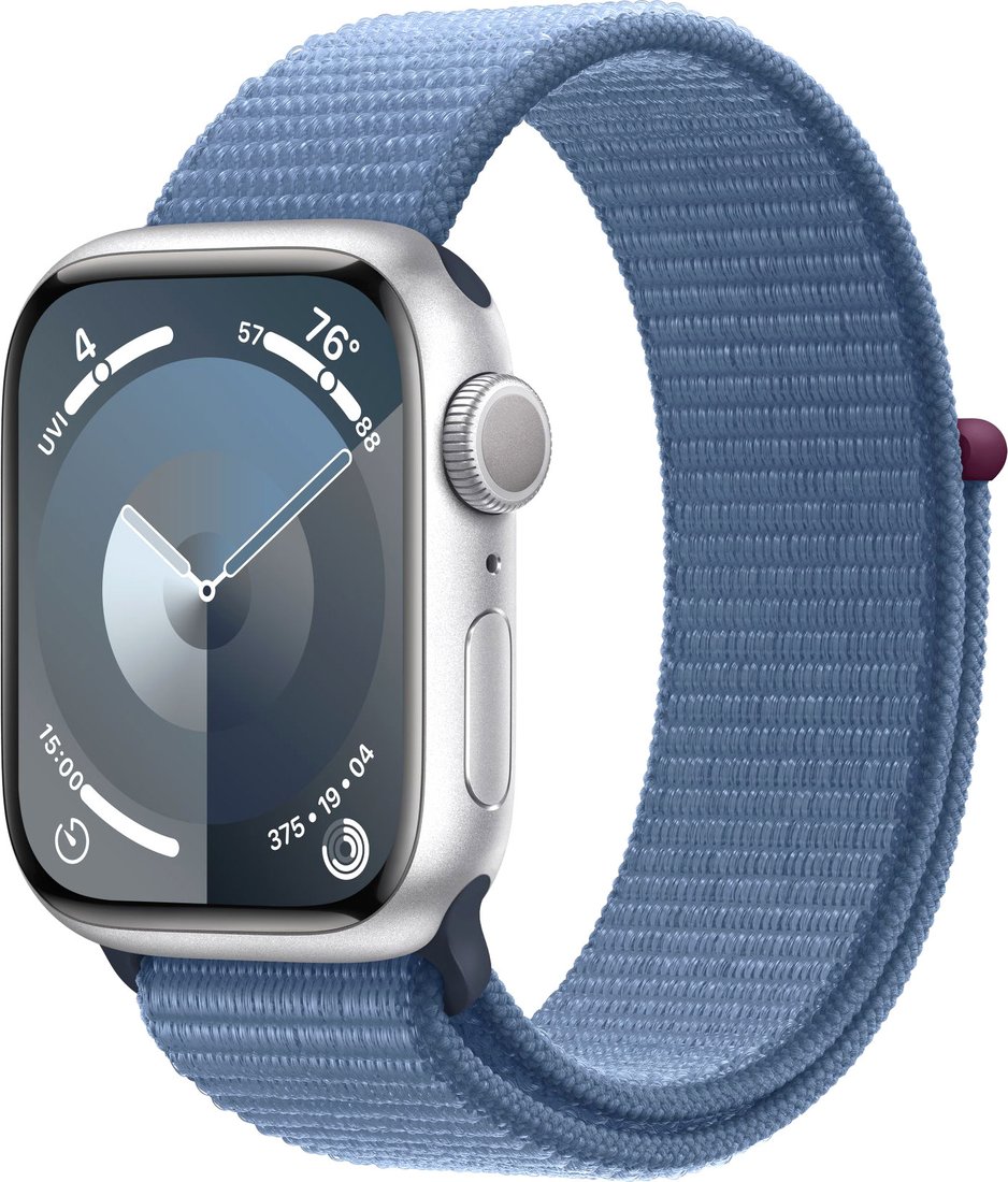 Умные часы Apple Watch Series 9 41 мм (алюминиевый корпус, серебристый/зимний синий, нейлоновый ремешок)