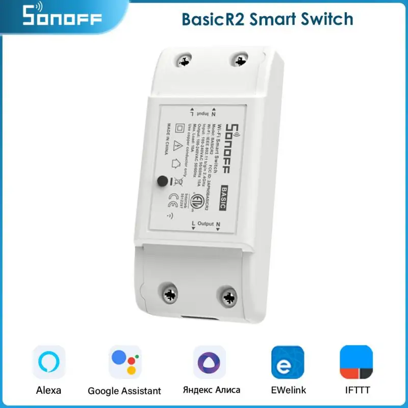 Умный Беспроводной Выключатель SONOFF BasicR2 с Wi-Fi, таймер светильник, умный дом, голосовое управление, работает с Alexa Google Home EWeLink