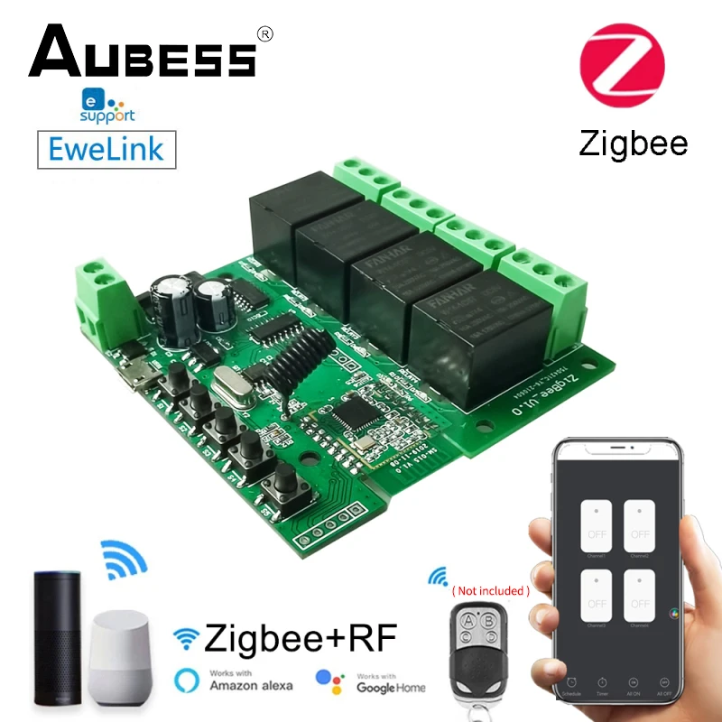 Умный Модуль светильник еля света EweLink Zigbee, 4-канальный беспроводной переключатель с самоблокировкой, работает со шлюзом EWeLink, 4 канала, 7-32 В