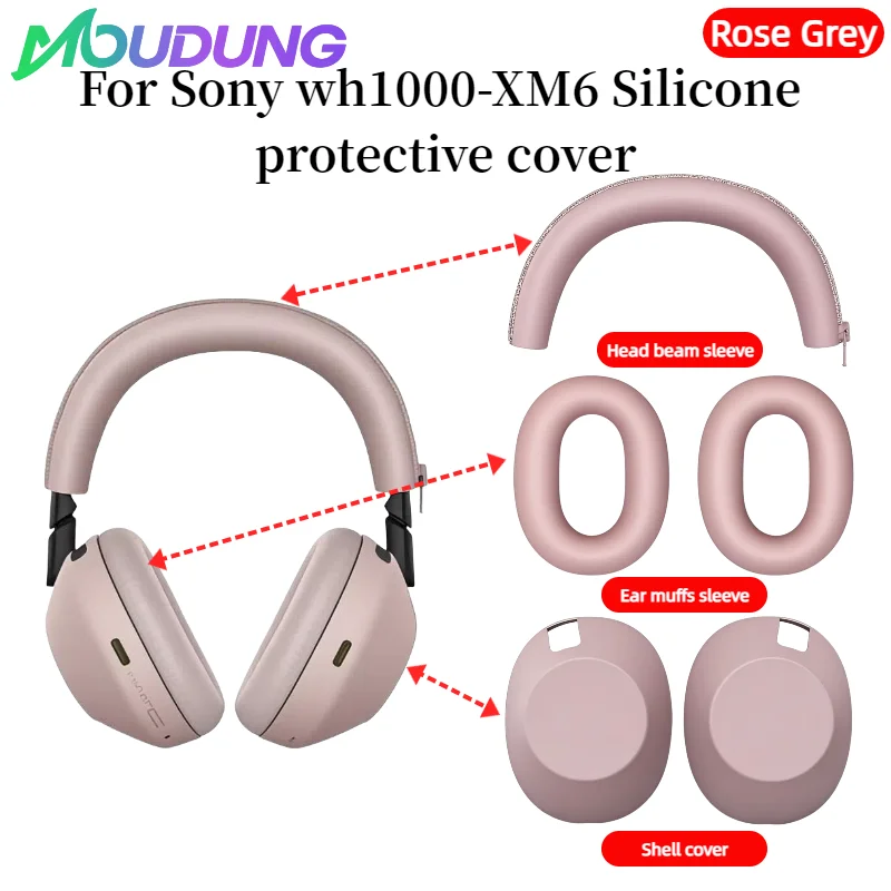 MOUDUNG Silicone Protective Case Headbeam / Earmuff Sleeve / Shell Sleeve for Sony WH-1000XM6 headset Soft skin friendly,durable