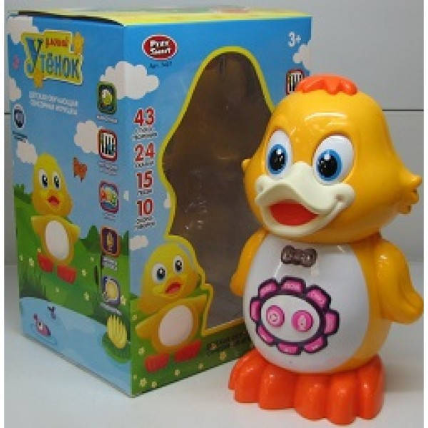 Утенок 7497 отличная развивающая игрушка для Вашего малыша. Яркая симпатичная добрая уточка реагирует на прикосновение к голове и крыльям (сенсорная). Клювик птички выполнен из пищевого силикона, эластичный и мягкий. Во время игры клювик будет переливаться радужными цветами. Ребенок сможет выучить цвета. У утенка светится красивый галстук – бабочка. Умный утенок содержит 6 обучающих функций. Есть более 100 звуковых треков. Уточка знает 43 стихотворения и поможет выучить малышу 10 скороговорок. Перед сном уточка расскажет крохе одну из 24-х сказок. Для развлечения малыша есть 15 детских веселых песенок. Можно потанцевать под музыку, или петь песенку вместе с ученой уточкой. Игра с интерактивной игрушкой развивает у малышей память, мелкую моторику, сообразительность, образное мышление. Выполнена детская игрушка из высококачественного нетоксичного полимера. Озвучена на русском языке.Рекомендовано от 3-х лет.Высота утки: 20см.Работает от 3-х батареек типа АА 1,5V (в комплект не входят).