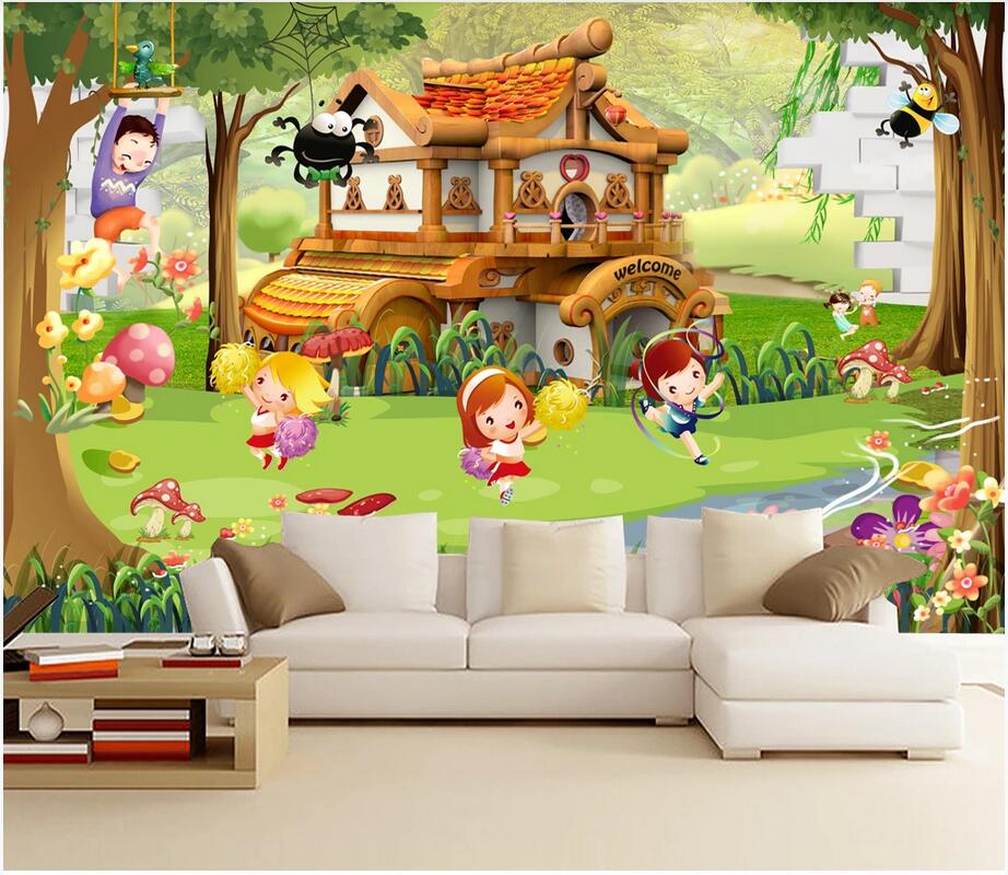 Custom 3d photo mural wall stickers Fantasy Forest Story Beautiful Children's Room Mural home decoration art pictures paper for kids room, Non-woven