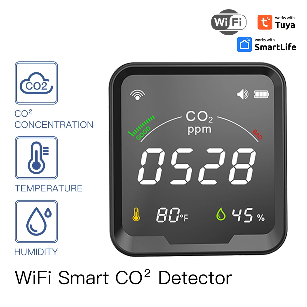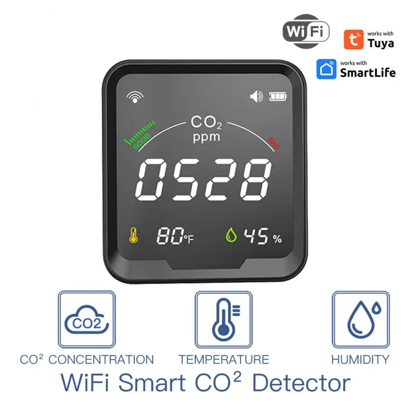Умный Wi-Fi датчик CO2 Tuya, измеритель углекислого газа, температуры и влажности, монитор с ЖК-экраном, 3 в 1, 1/2/3 шт.